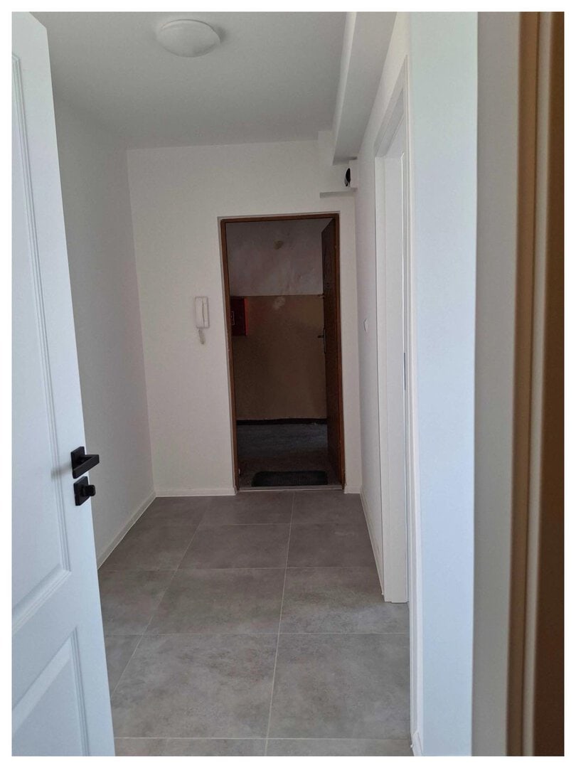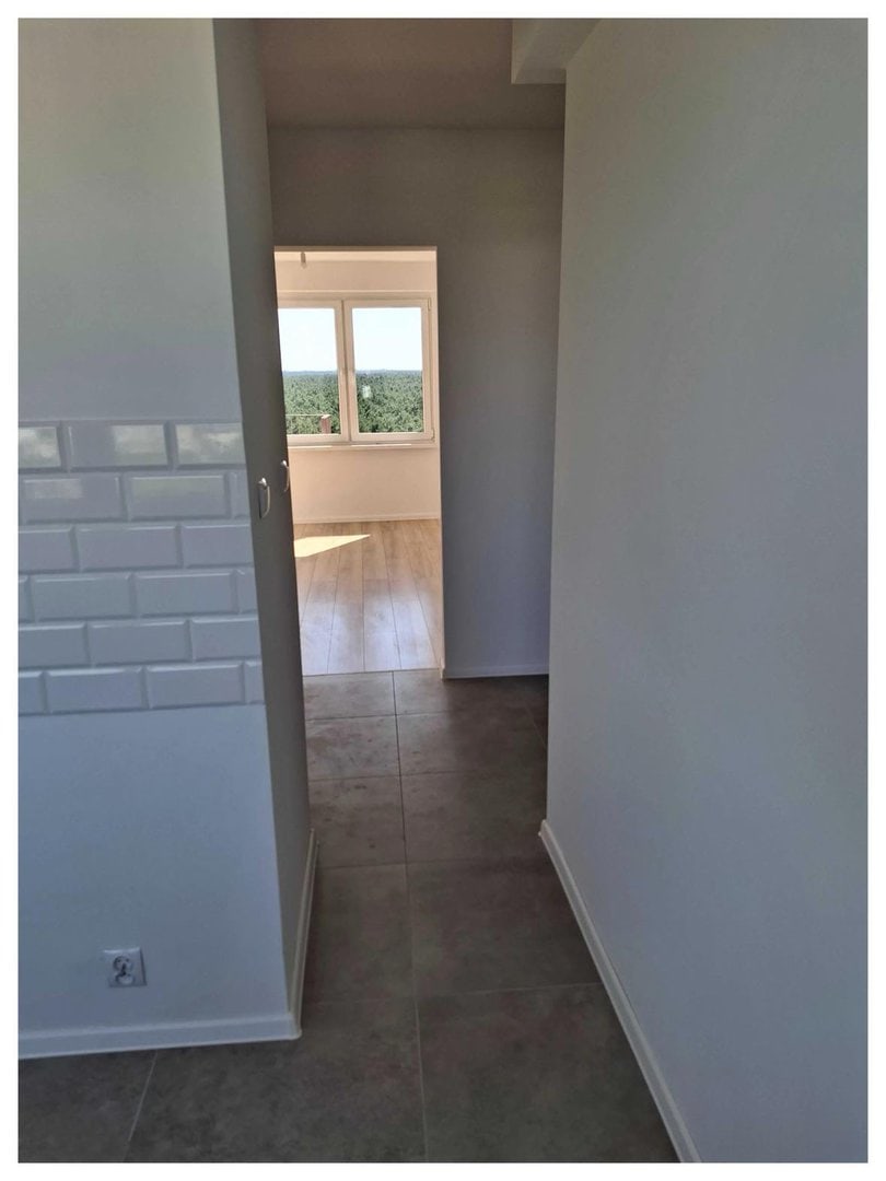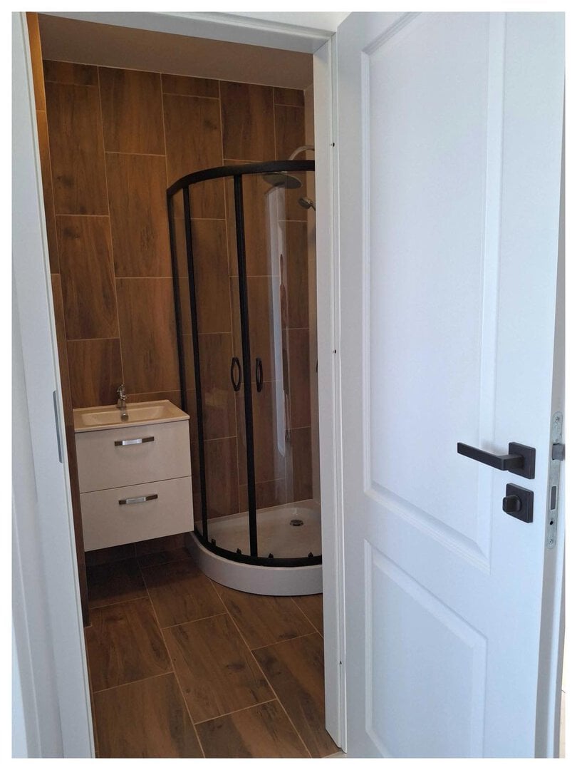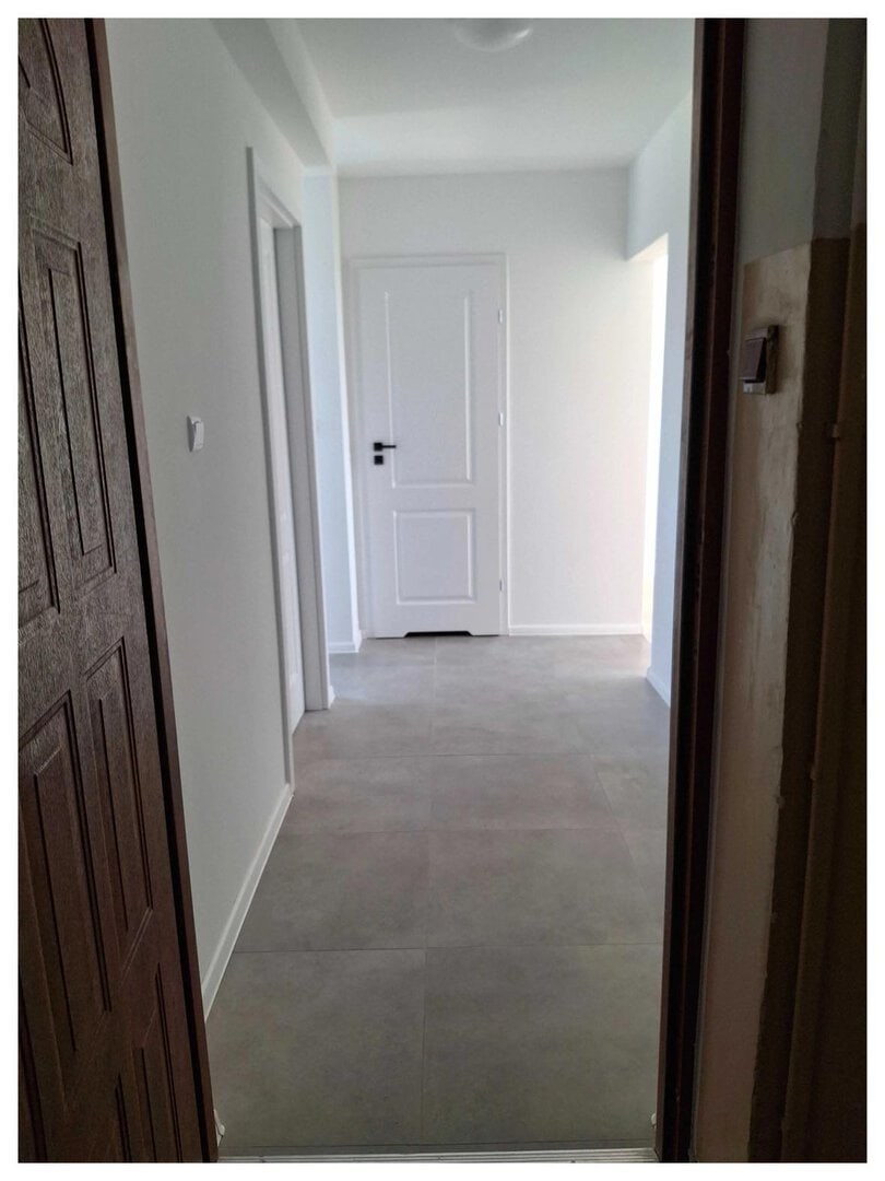 Gładzie na ścianach, nowe panele, gresy. Nowe ościeżnice i drzwi wewnętrzne.