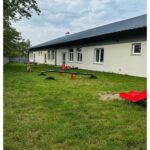 Teren ogrodzony. Część wyłożona kostką (przestronny parking) oraz miejsce do odpoczynku –zadbany trawnik.